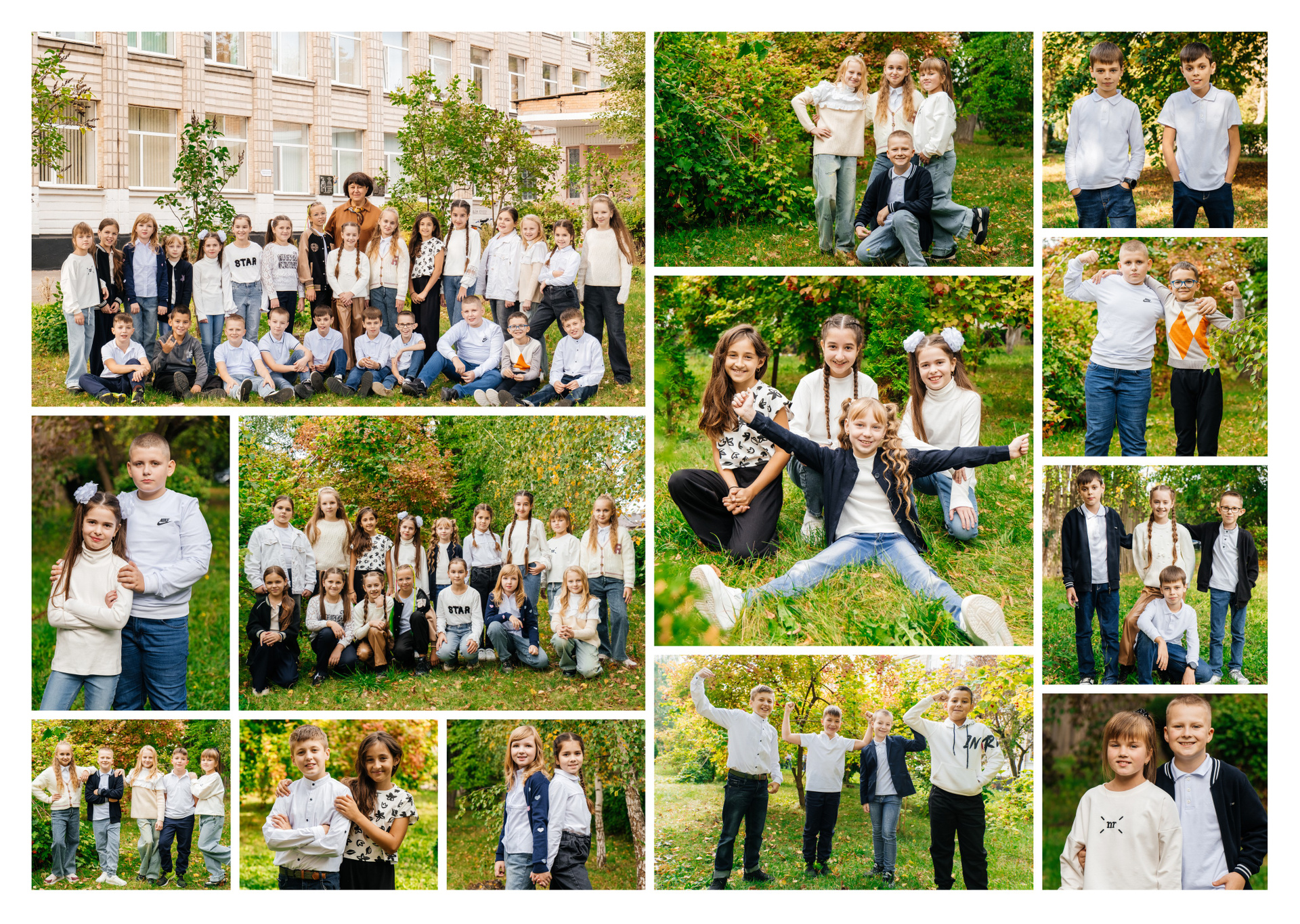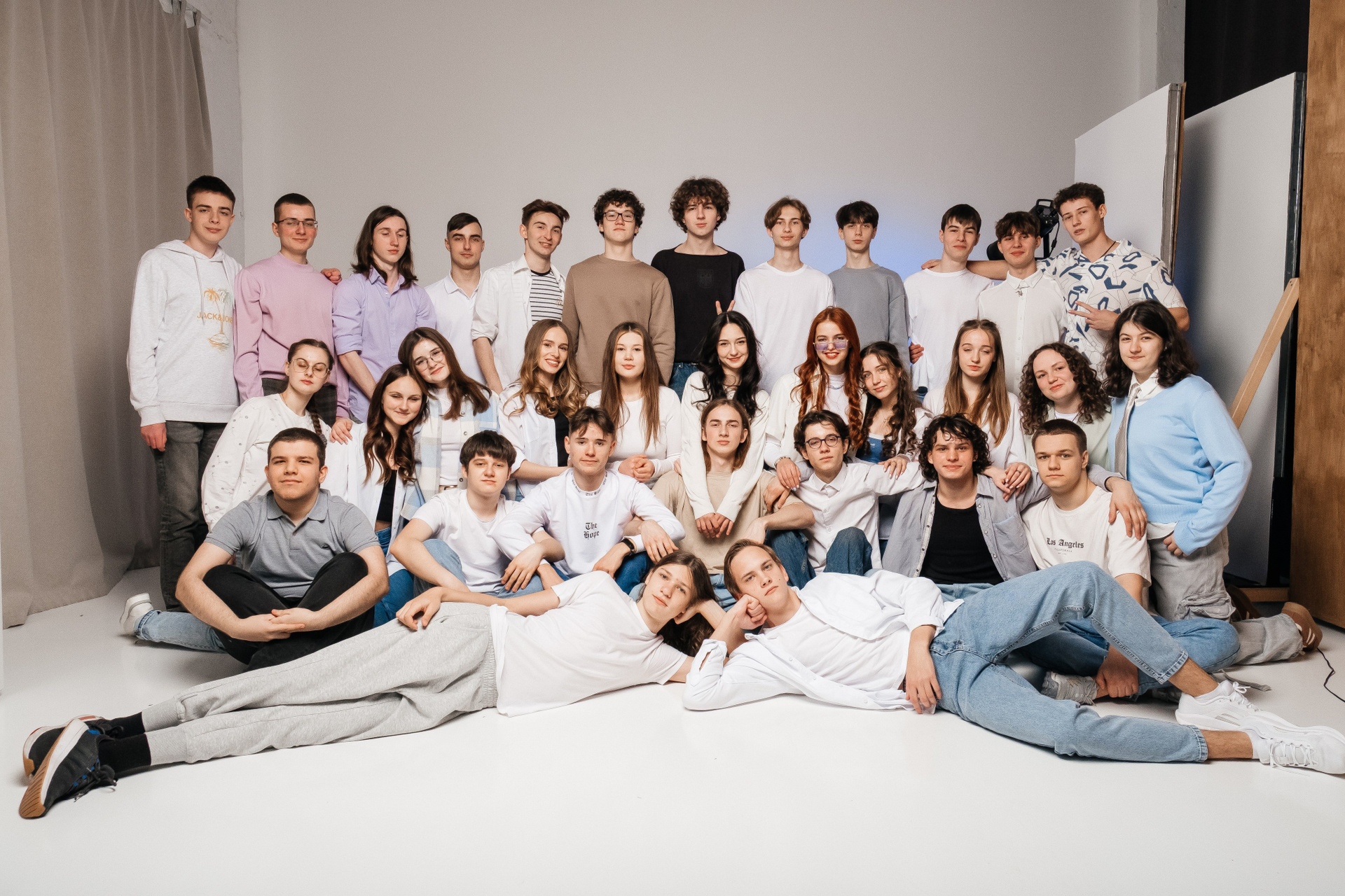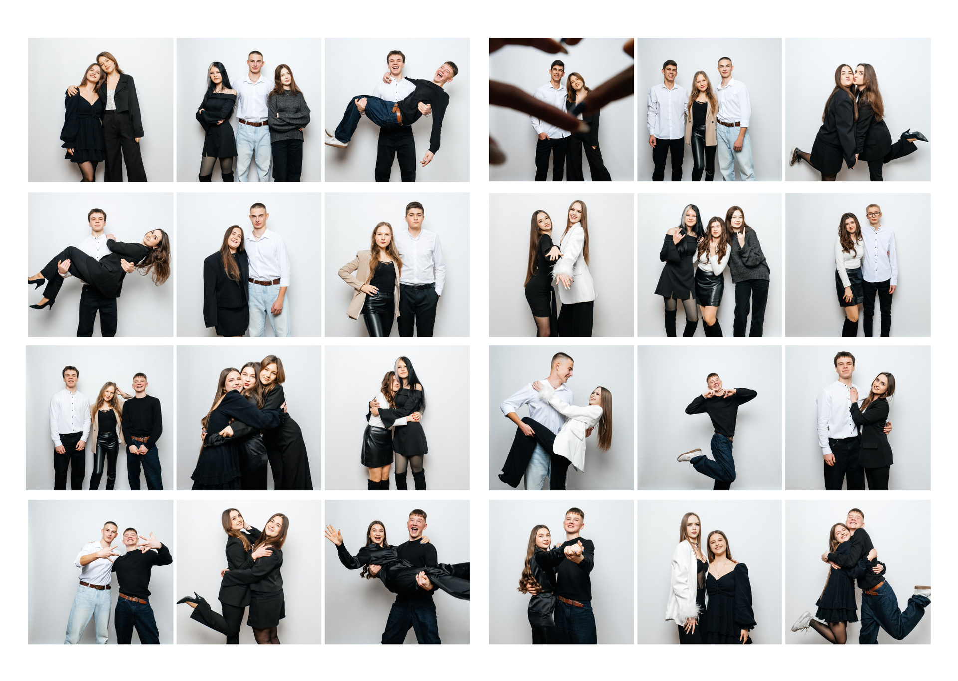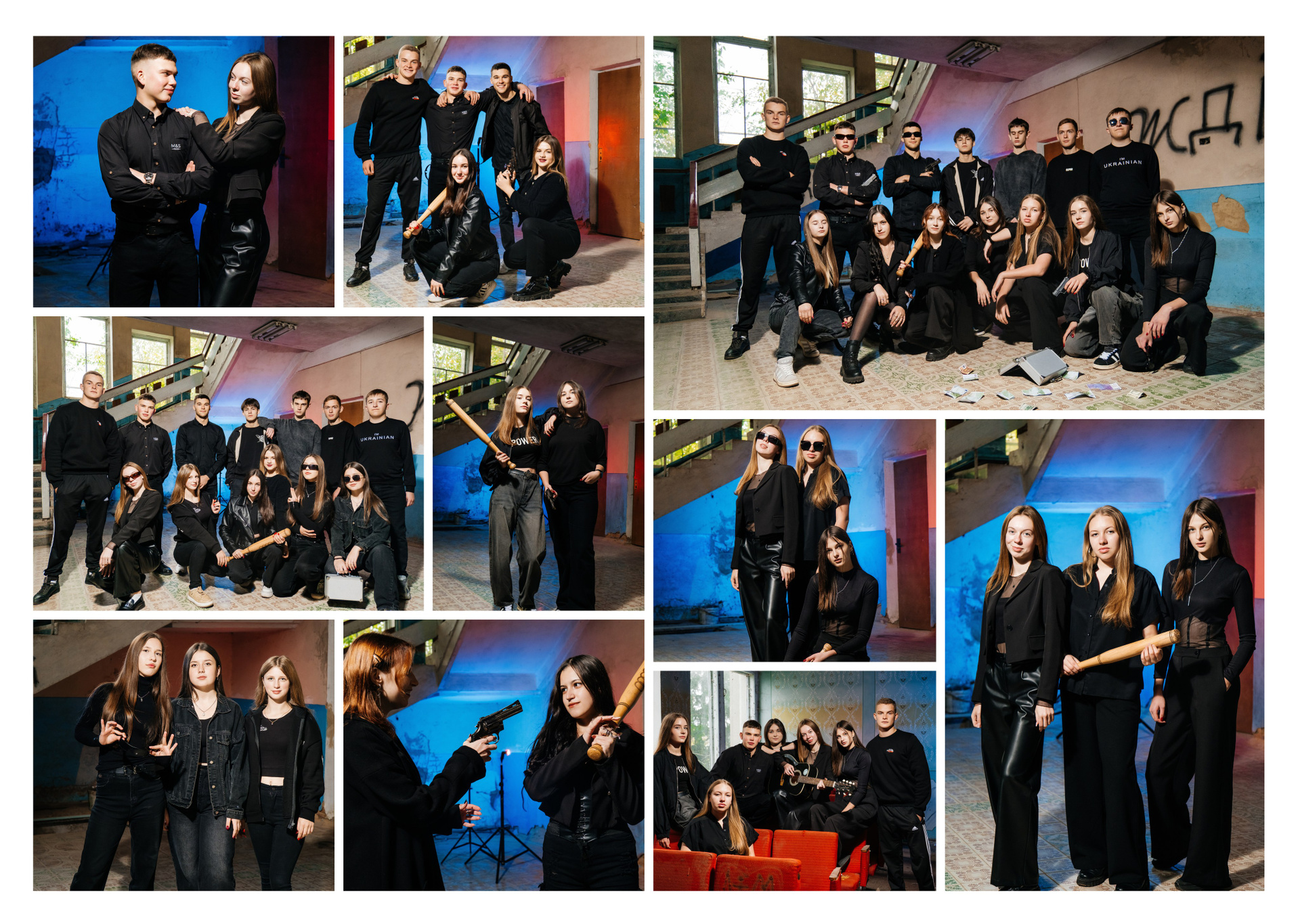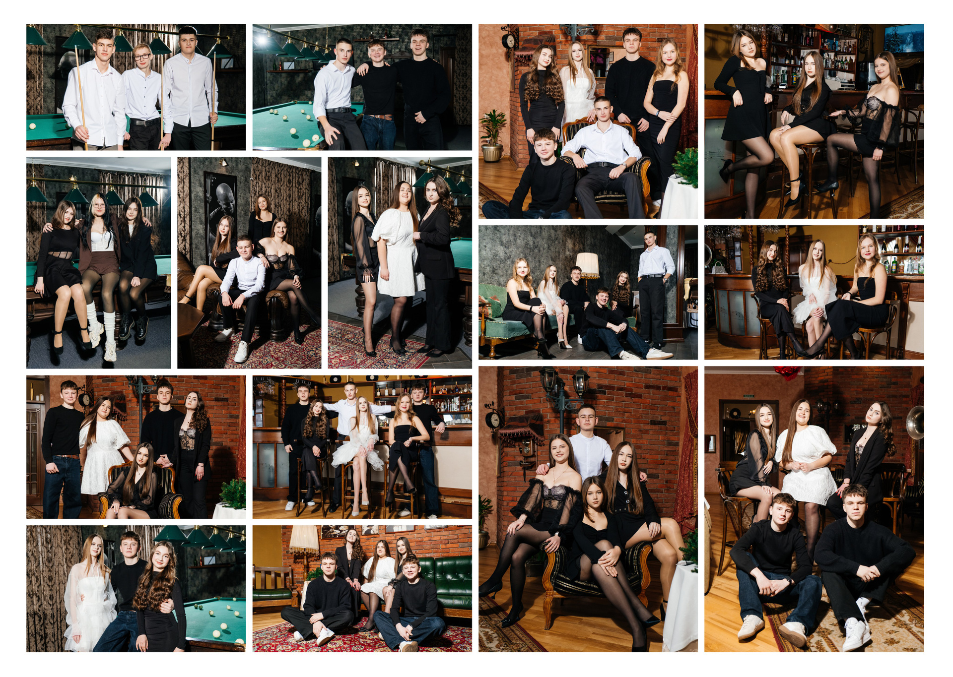 портрети можуть бути зняті на фоні (білий), на сьогоднішній день це найпоширеніший варіант, а також в інтер’єрі класу бібліотеки і т.д.