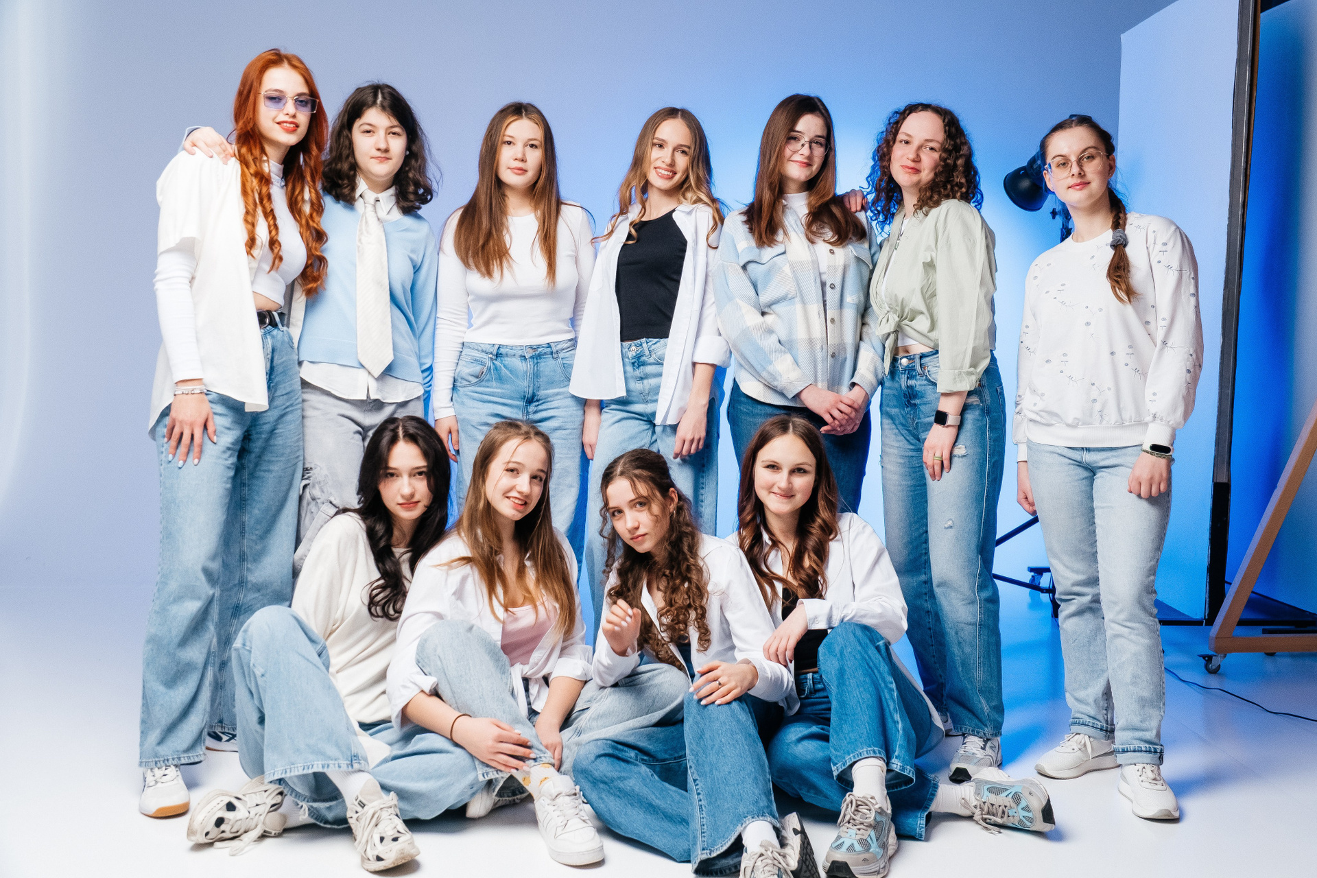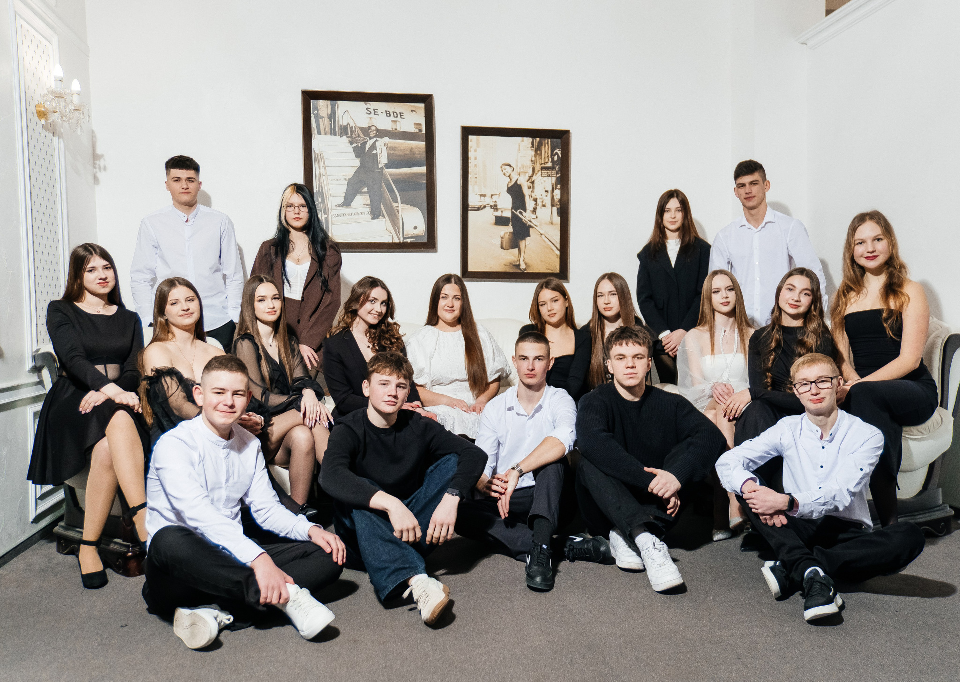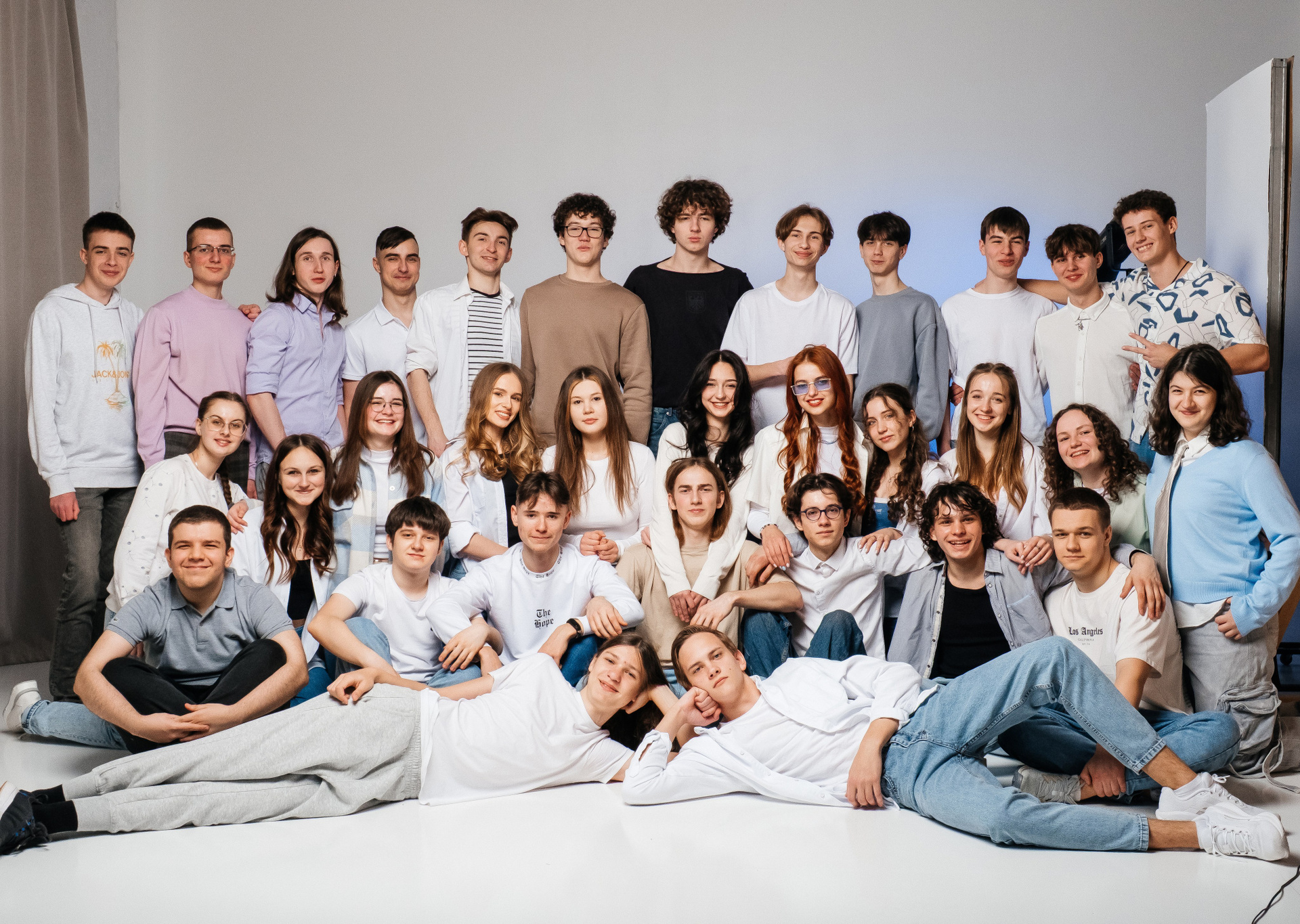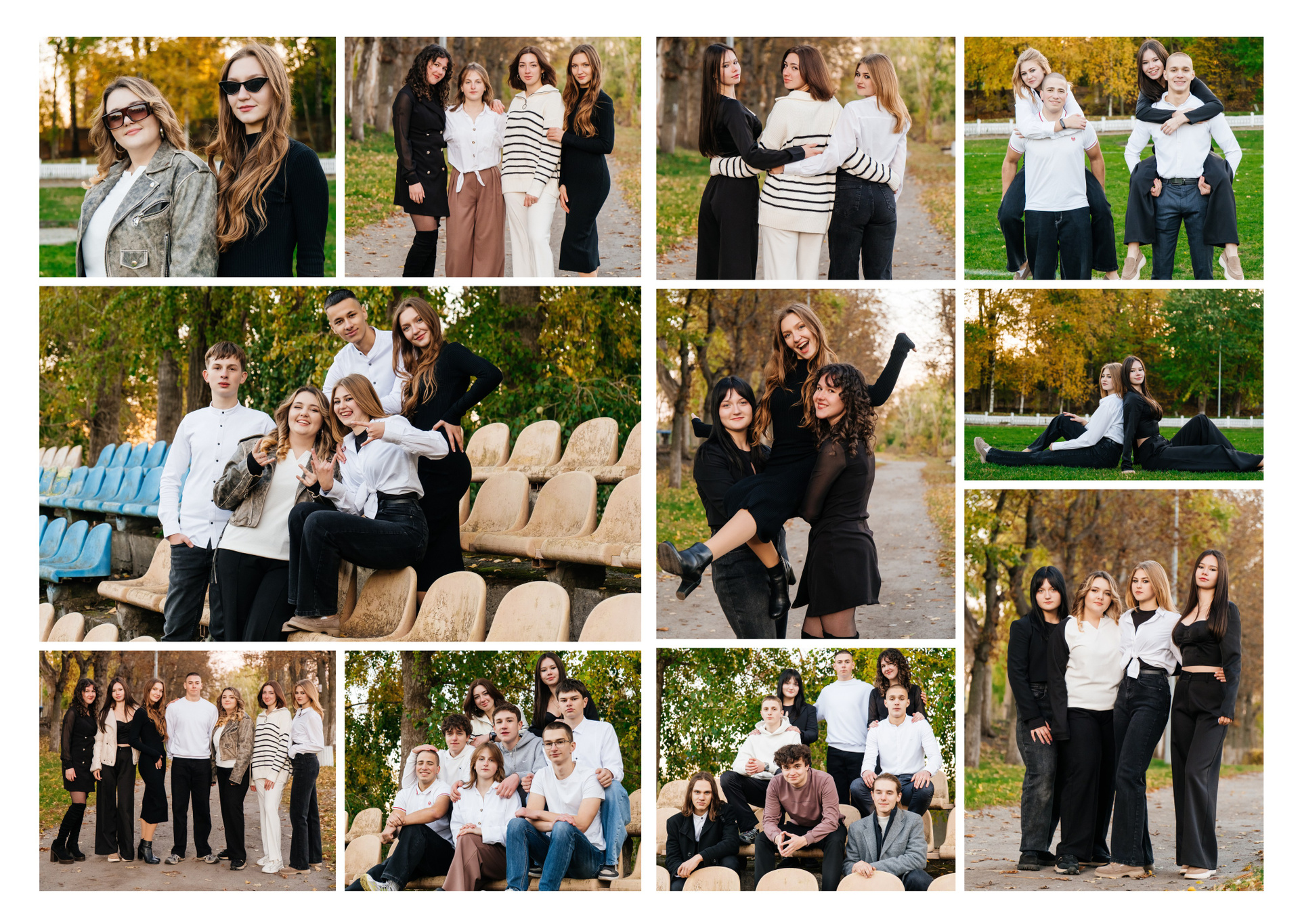 портрети можуть бути зняті на фоні (білий), на сьогоднішній день це найпоширеніший варіант, а також в інтер’єрі класу бібліотеки і т.д.